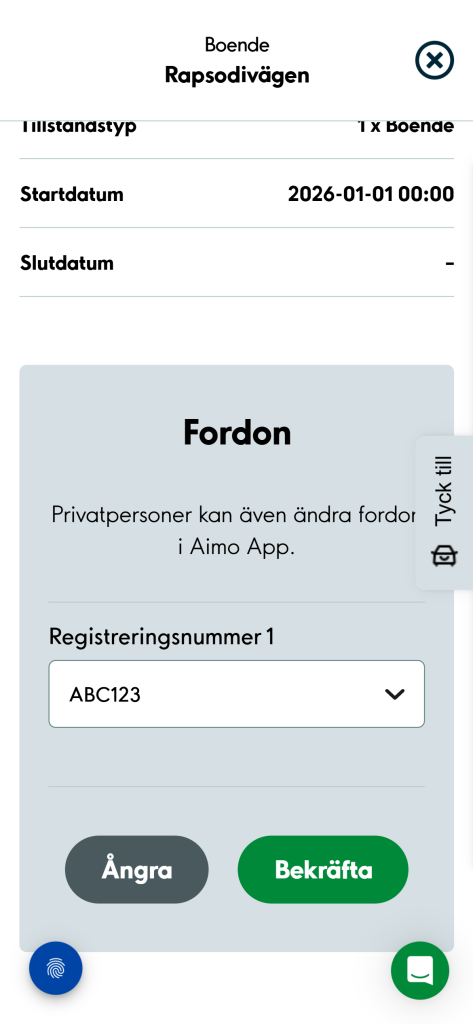 4. I rullgardinslistan väljer du antingen ett befintligt registreringsnummer eller Lägg till nytt fordon.