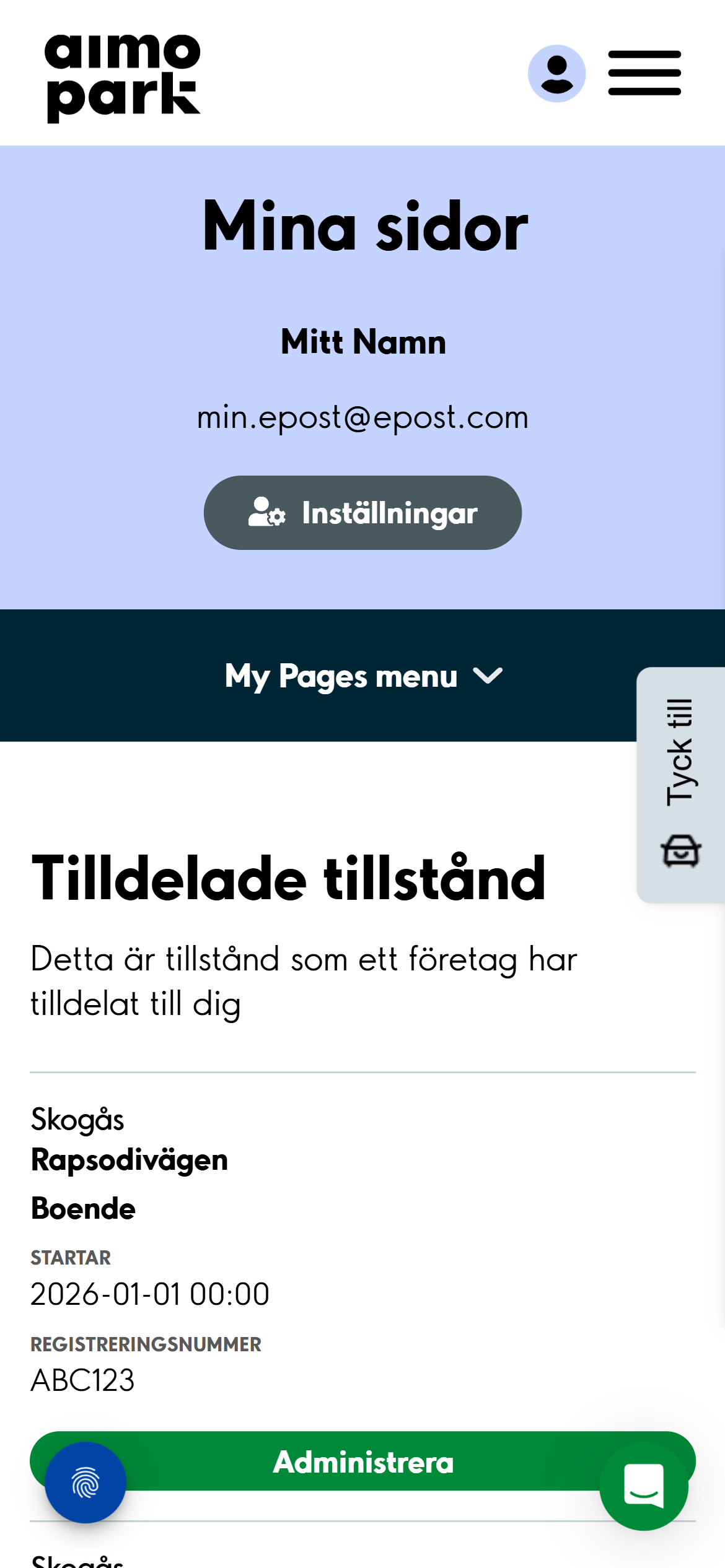 Observera att det är ett aimo-konto per hushåll så om ni är flera som behöver hantera parkeringen behöver ni dela konto